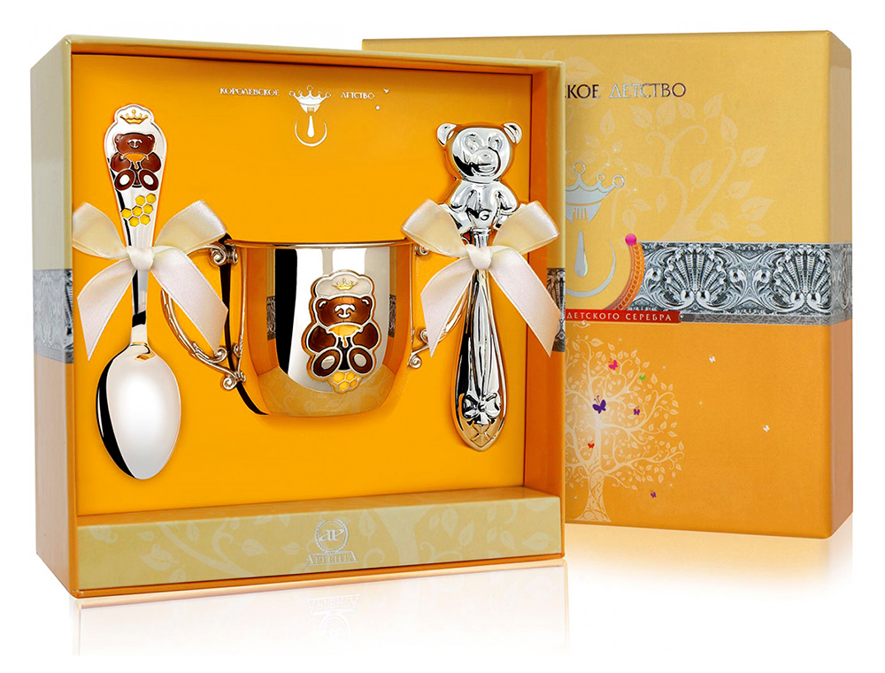- Предлагаемые у нас детские наборы посуды из серебра смогут порадовать как малышей, так и всю семью! Согласитесь, приятно наблюдать, что любимое чадо ест красивыми столовыми приборами, пьет из серебряной кружки и играет серебряной погремушкой!