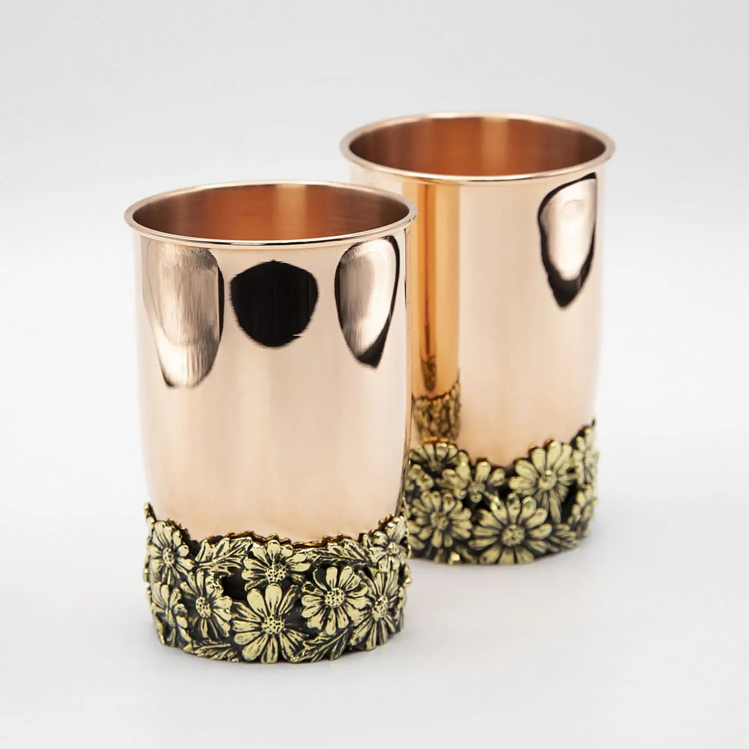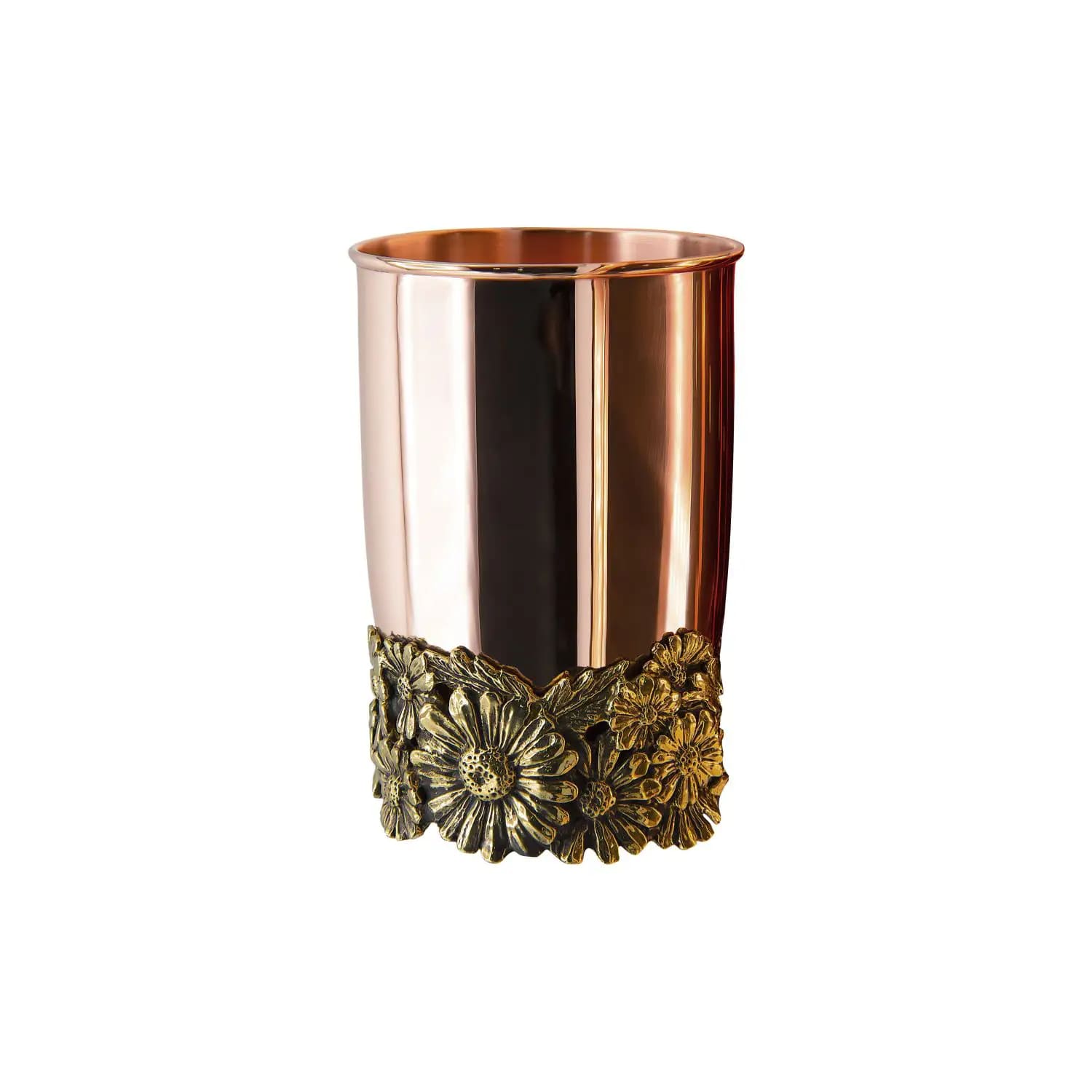 Медный стакан "Ромашки" с латунью арт. КМ1834СН06 - 1 шт. (Вес 88 гр.) Объём 250 мл., Высота 95 мм., Диаметр 65 мм.