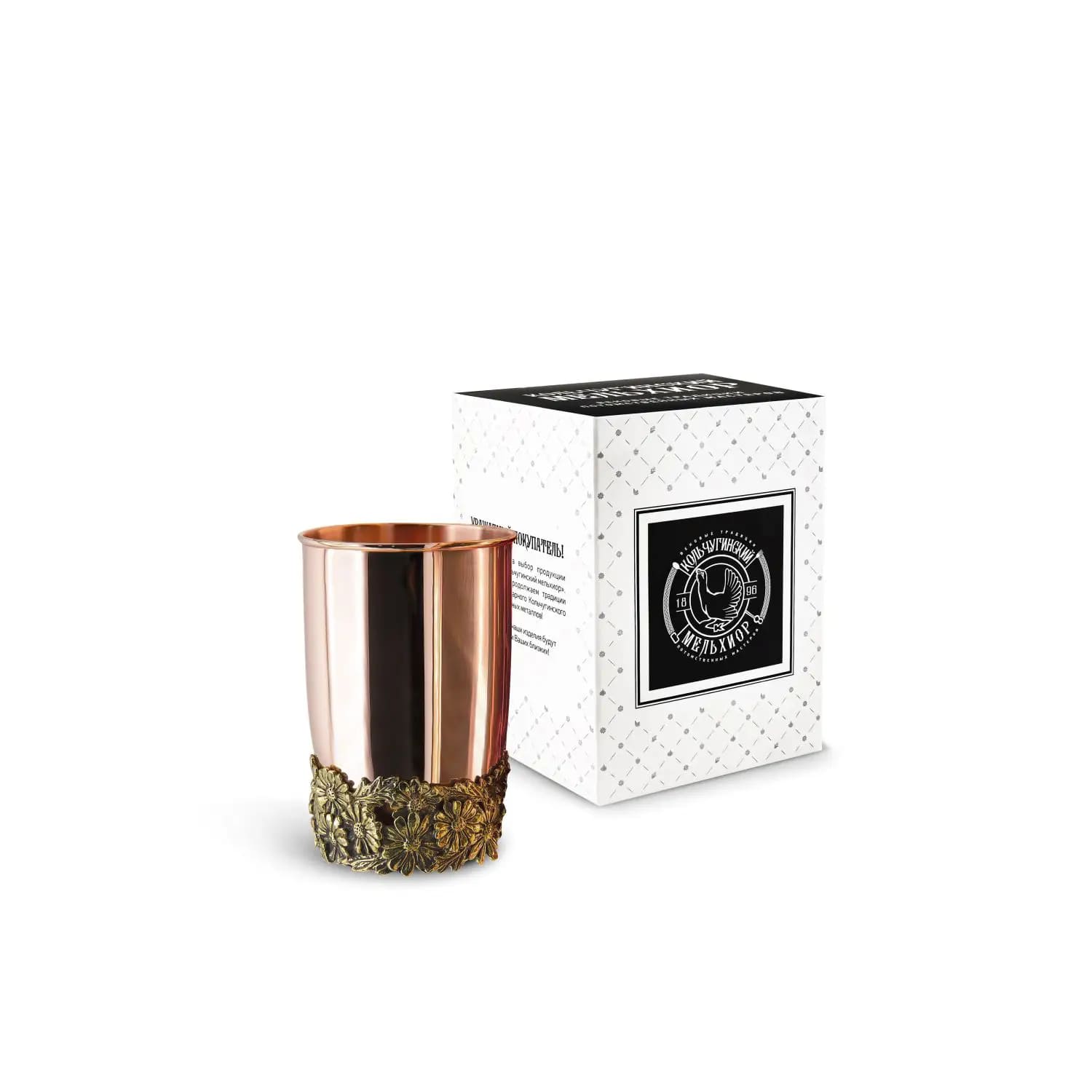 СТАКАН МЕДНЫЙ "РОМАШКИ" (0,25 ЛИТРА) С ЛАТУНЬЮ – КОЛЬЧУГИНСКИЙ МЕЛЬХИОР