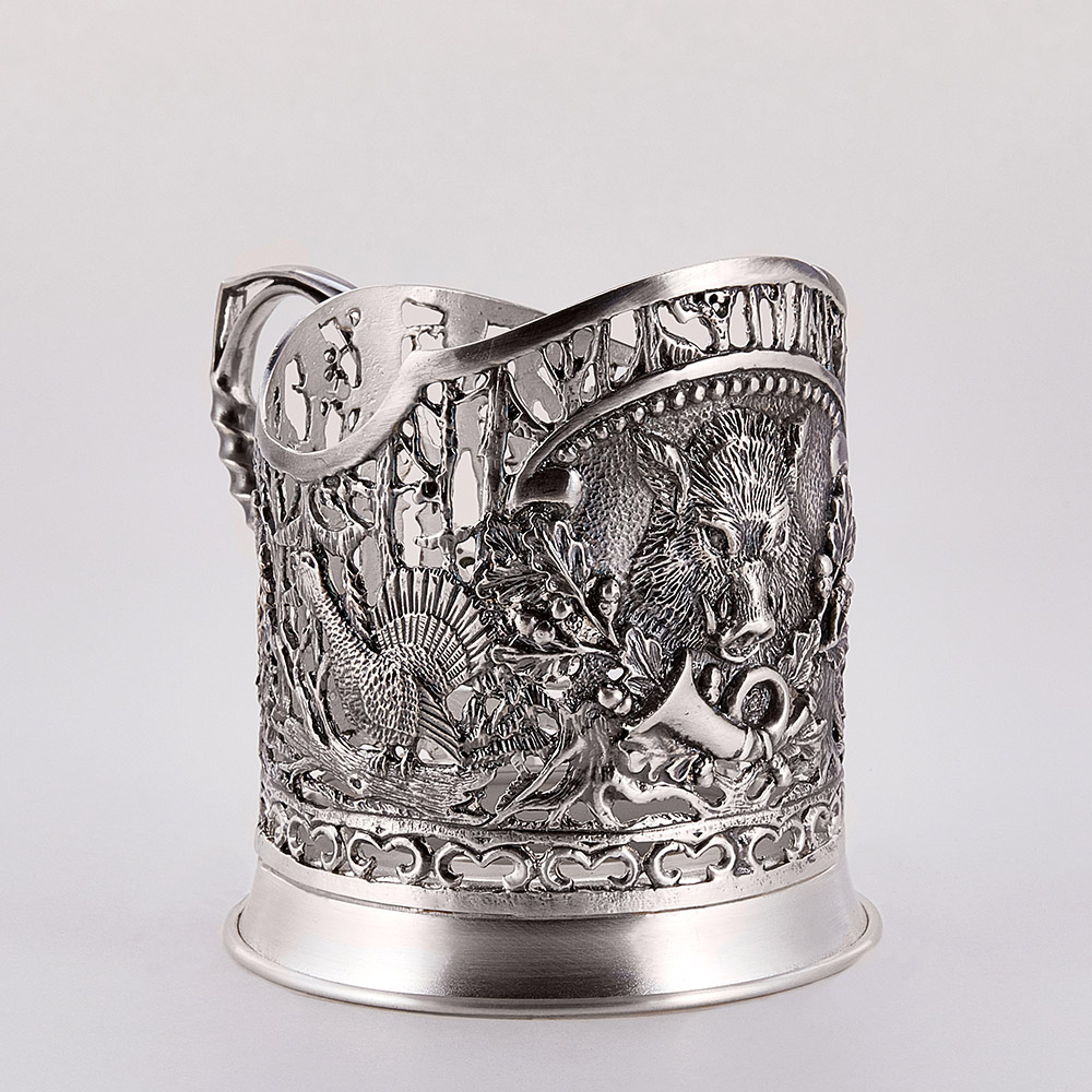 1. Подстаканник "Кабан" литой посеребренный - 1 шт. (Вес 165 гр., Диаметр 7 см., Высота 10 см.)