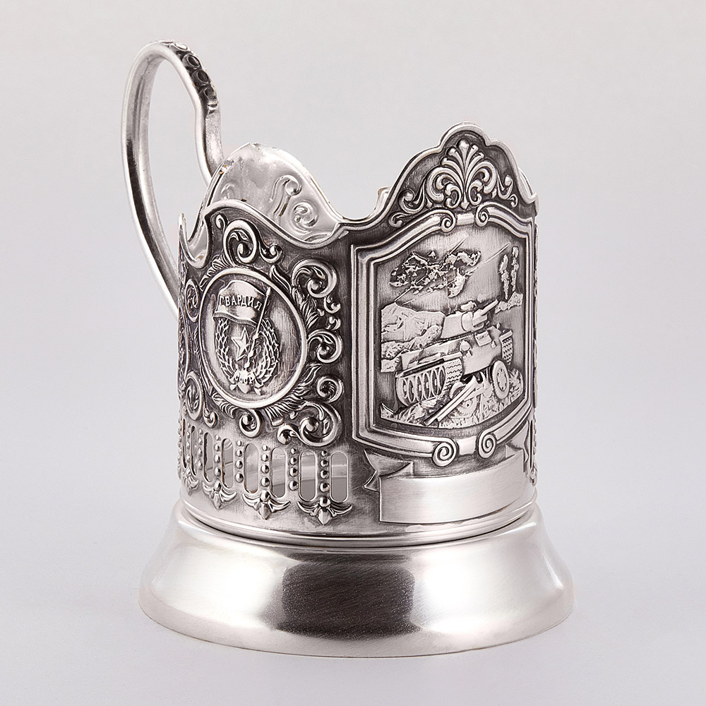 1. Подстаканник "Танк Т-34" посеребренный - 1 шт. (Вес 165 гр., Диаметр 7 см., Высота 10 см.)
