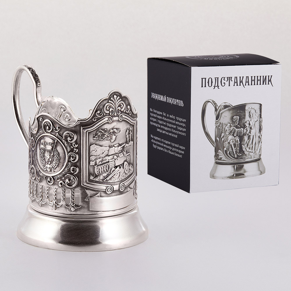 ПОДСТАКАННИК "ТАНК Т-34" ПОСЕРЕБРЕННЫЙ – КОЛЬЧУГИНСКИЙ МЕЛЬХИОР