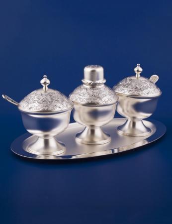 Серебряный набор для специй "Ривьера" арт. С336873004 - 1 шт. (средний вес 563 гр.) Длина 228 мм., Ширина 140 мм., Высота 90 мм.