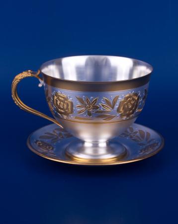 1. Серебряная чайная чашка "№3" с позолотой арт. С33687700325 - 1 шт. Высота 78 мм., Объем 225 мл.
