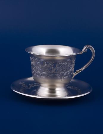 СЕРЕБРЯНАЯ ЧАЙНАЯ ЧАШКА "№17" С БЛЮДЦЕМ – МСТЁРСКИЙ ЮВЕЛИР