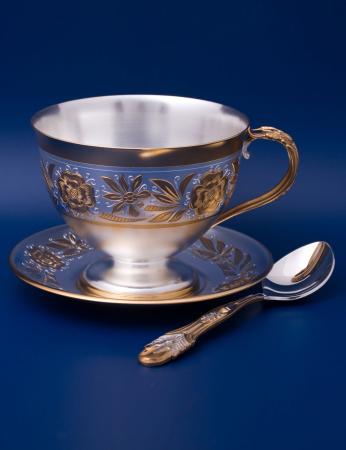 1. Серебряная чайная чашка "№3" с позолотой арт. C33687400325 - 1 шт. Высота 78 мм., Объем 225 мл.