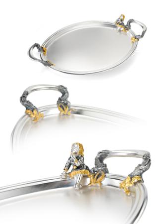 Эксклюзивный поднос под кувшин для хранения воды сделан полностью вручную в стиле “старых” мастеров московской ювелирной школы.