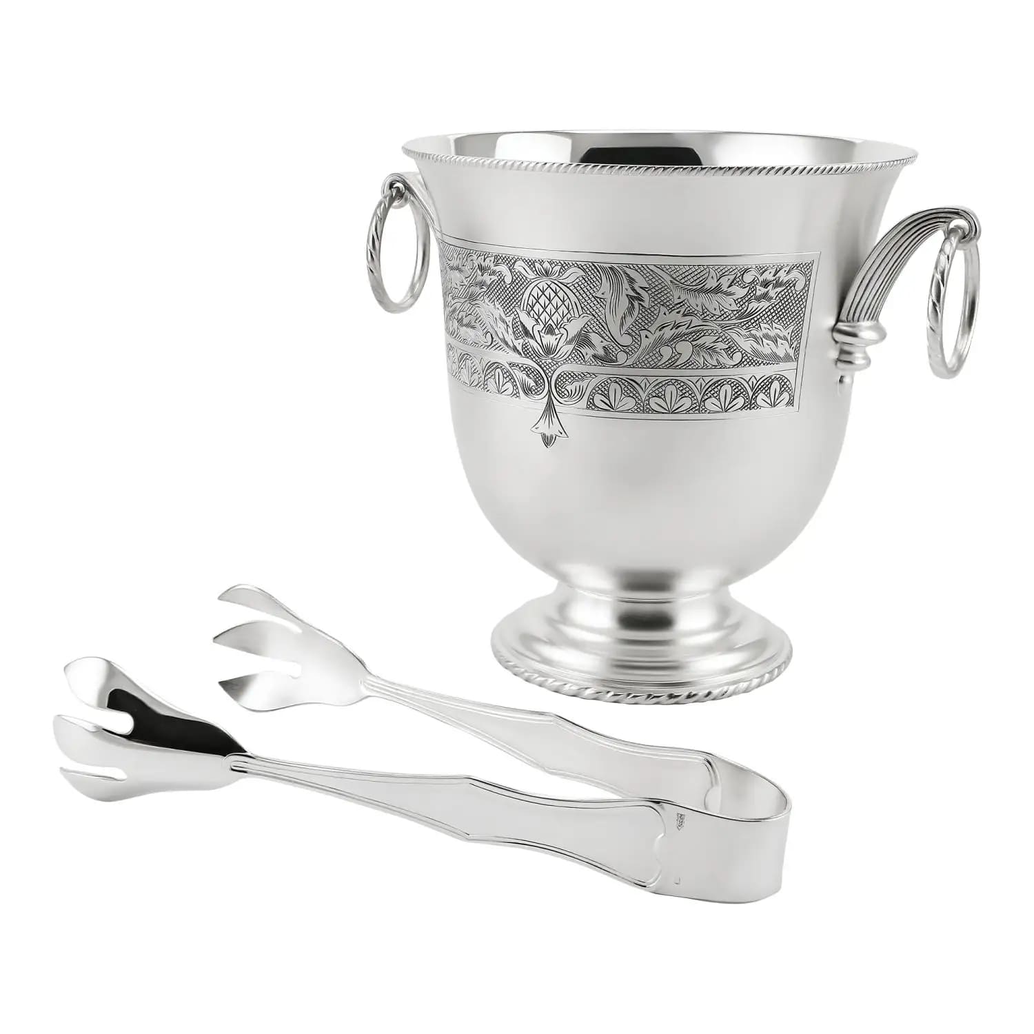Серебряное ведро для льда "№3" со щипцами арт. С33684400325 - 1 шт. Высота 140 мм., Диаметр 165 мм.