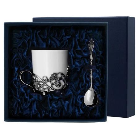 СЕРЕБРЯНАЯ ЧАЙНАЯ ЧАШКА "ВИТАЯ" С ЧЕРНЕНИЕМ И ЛОЖКОЙ – АРГЕНТА