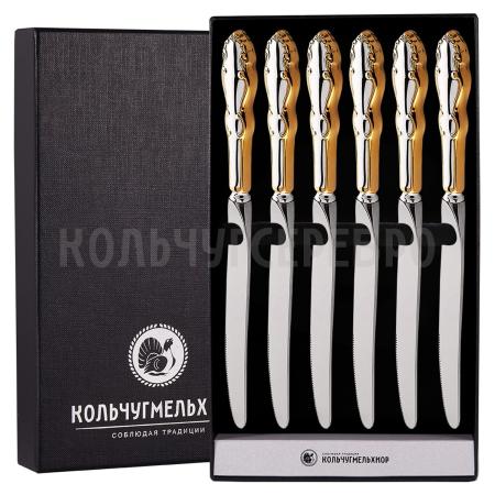 Cтоловый набор из мельхиора "Лира" с позолотой на 6 персон (6 столовых ножей)