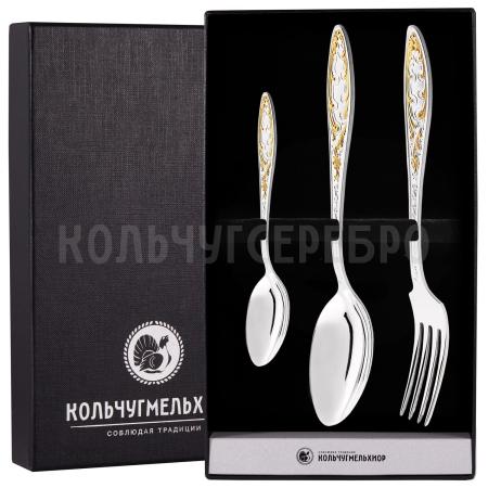 СТОЛОВЫЙ НАБОР ИЗ МЕЛЬХИОРА "МОРОЗКО" С ПОЗОЛОТОЙ (3 ПРЕДМЕТА) – КОЛЬЧУГИНСКИЙ МЕЛЬХИОР