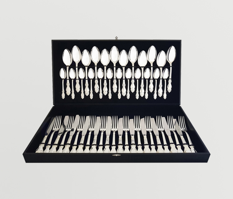 Здесь Вы найдете качественные столовые приборы из мельхиора на 12 персон, упакованные в презентабельный футляр.