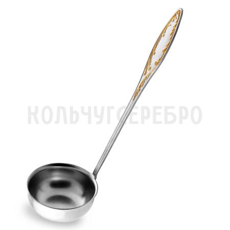 Половник из мельхиора "Пламя" с позолотой арт. С214108 - 1 шт. (средний вес 188 гр.) Длина 260 мм., Диаметр 83 мм.