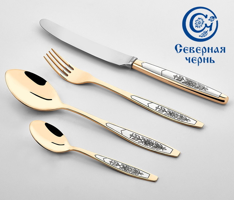 Серебряные столовые приборы из серебра 925 пробы "Астра" позолоченная