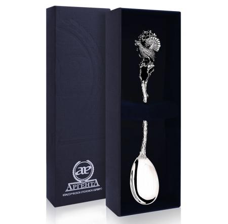 СЕРЕБРЯНАЯ ЧАЙНАЯ ЛОЖКА "ГЛУХАРЬ" С ЧЕРНЕНИЕМ – АРГЕНТА