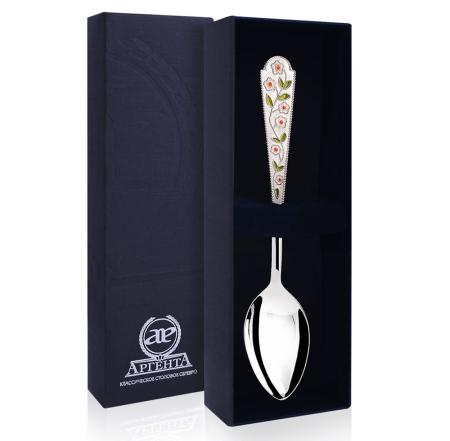 СЕРЕБРЯНАЯ ЧАЙНАЯ ЛОЖКА "ЛЕТО-РОМАШКА" С ЭМАЛЬЮ
