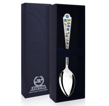 СЕРЕБРЯНАЯ ЧАЙНАЯ ЛОЖКА "ЛЕТО-ВАСИЛЕК" С ЭМАЛЬЮ – АРГЕНТА