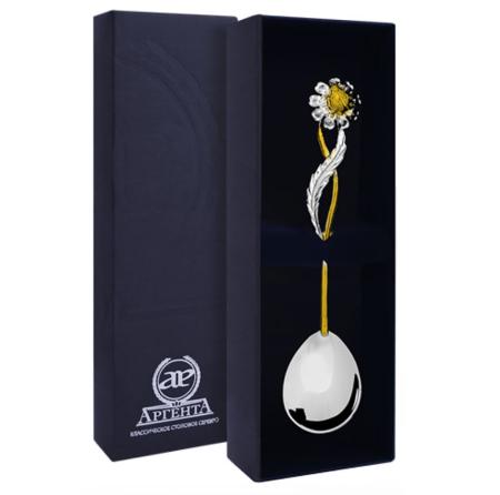СЕРЕБРЯНАЯ ЧАЙНАЯ ЛОЖКА "РОМАШКА" С ПОЗОЛОТОЙ – АРГЕНТА