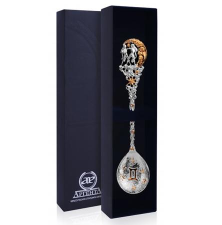 СЕРЕБРЯНАЯ ЧАЙНАЯ ЛОЖКА "ЗОДИАК-БЛИЗНЕЦ" С ПОЗОЛОТОЙ – АРГЕНТА