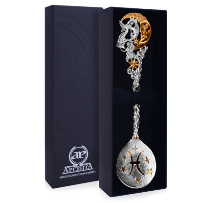 СЕРЕБРЯНАЯ ЧАЙНАЯ ЛОЖКА "ЗОДИАК-РЫБА" С ПОЗОЛОТОЙ – АРГЕНТА