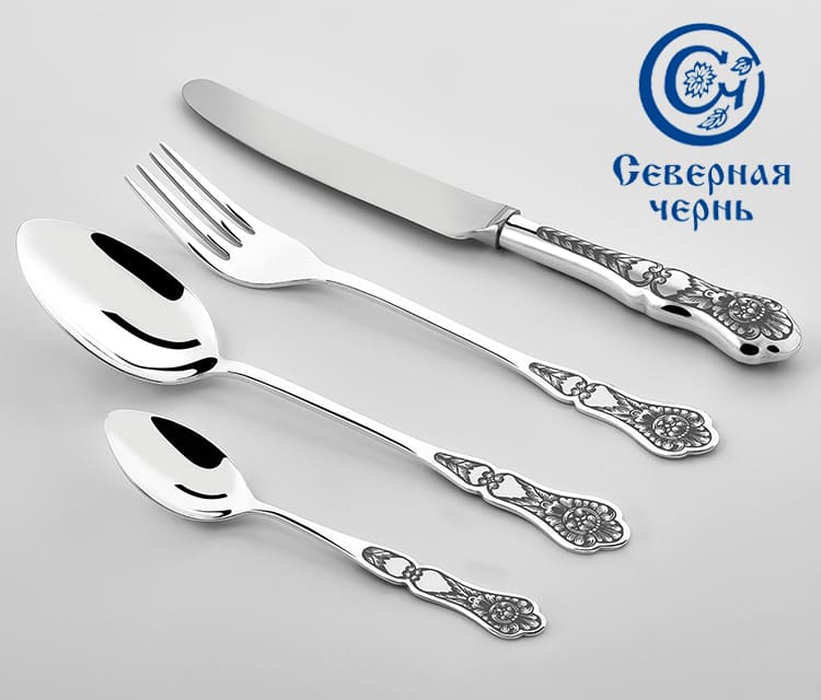 Серебряные столовые приборы из серебра 925 пробы "Черневой" с чернением