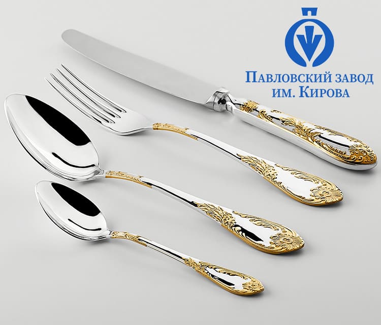 Серебряные столовые приборы из серебра 925 пробы "Императорский" М-12 с позолотой
