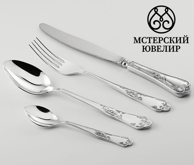Серебряные столовые приборы из серебра 925 пробы "Классика" с чернением