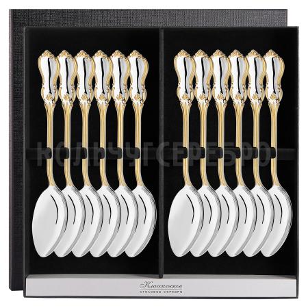 Серебряный столовый набор "Вензель" с позолотой на 12 персон (12 столовых ложек)