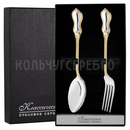 СЕРЕБРЯНЫЙ СТОЛОВЫЙ НАБОР "ВЕНЗЕЛЬ" С ПОЗОЛОТОЙ (2 ПРЕДМЕТА) – КРАСНАЯ ПРЕСНЯ