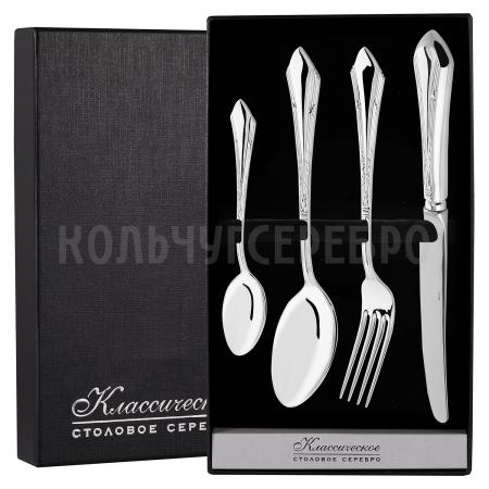 СЕРЕБРЯНЫЙ СТОЛОВЫЙ НАБОР "ЭЛЕГАНТНЫЙ" (4 ПРЕДМЕТА) – КРАСНАЯ ПРЕСНЯ