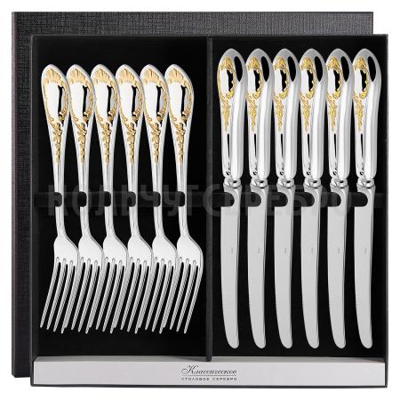 Серебряный столовый набор "Весна" с позолотой на 6 персон (6 вилок, 6 ножей)