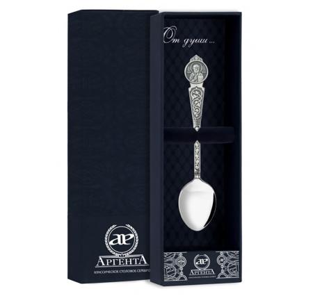 СЕРЕБРЯНАЯ ЧАЙНАЯ ЛОЖКА "НИКОЛАЙ ЧУДОТВОРЕЦ" С ЧЕРНЕНИЕМ – АРГЕНТА