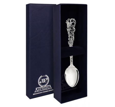 СЕРЕБРЯНАЯ ЧАЙНАЯ ЛОЖКА "ОХОТНИЧЬЯ" С ЧЕРНЕНИЕМ – АРГЕНТА