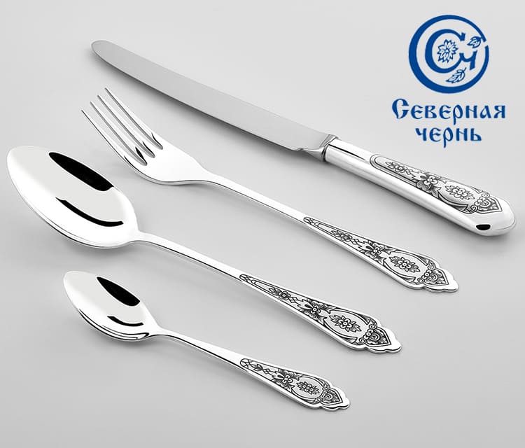 Серебряные столовые приборы из серебра 925 пробы "Праздничный" с чернением