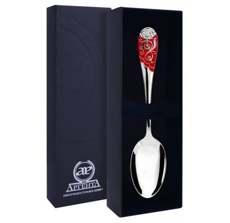 СЕРЕБРЕННАЯ ЧАЙНАЯ ЛОЖКА "РОЗА" С КРАСНОЙ ЭМАЛЬЮ – АРГЕНТА