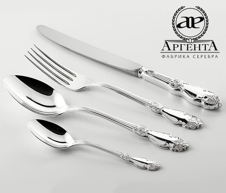 Серебряные столовые приборы из серебра 925 пробы "Серебряная роза"