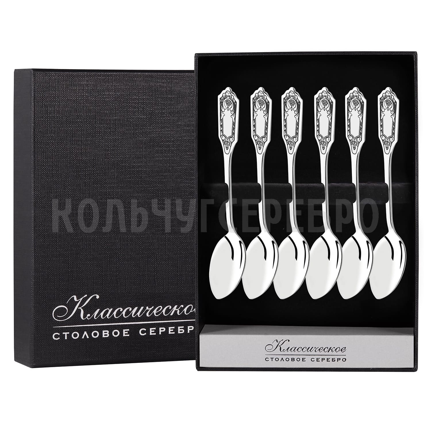 СЕРЕБРЯНЫЙ КОФЕЙНЫЙ НАБОР "ФАМИЛЬНЫЙ" С ЧЕРНЕНИЕМ (6 КОФЕЙНЫХ ЛОЖЕК) - СЕВЕРНАЯ ЧЕРНЬ