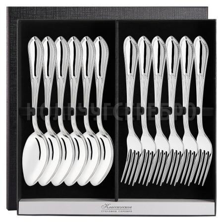 Серебряный столовый набор "Ампир" на 6 персон (6 вилок, 6 ложек)