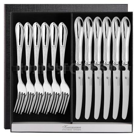 СЕРЕБРЯНЫЙ СТОЛОВЫЙ НАБОР "АМПИР" (6 ВИЛОК, 6 НОЖЕЙ) – КРАСНАЯ ПРЕСНЯ