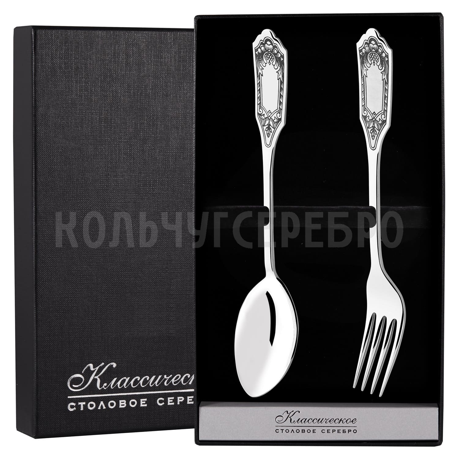 СЕРЕБРЯНЫЙ СТОЛОВЫЙ НАБОР "ФАМИЛЬНЫЙ" С ЧЕРНЕНИЕМ (2 ПРЕДМЕТА) - СЕВЕРНАЯ ЧЕРНЬ