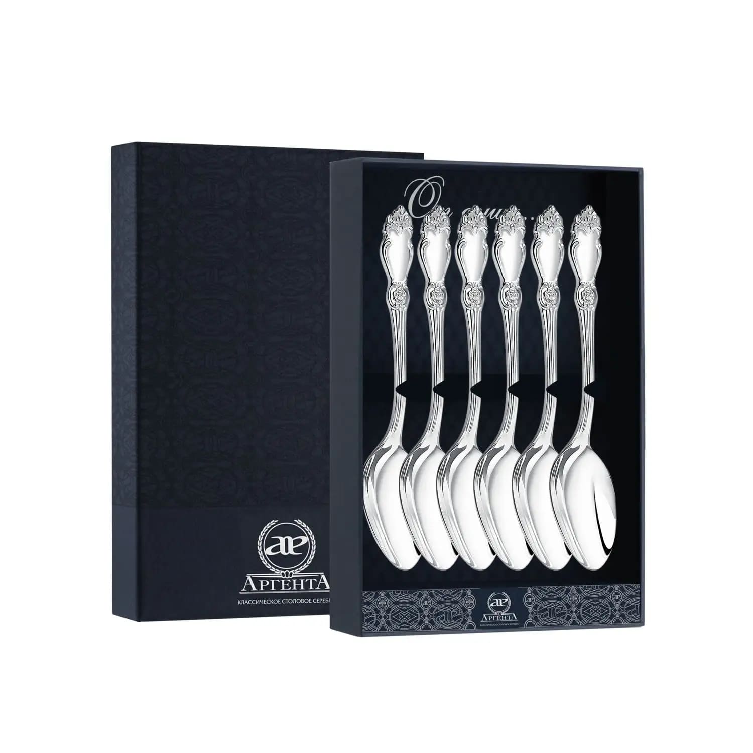СЕРЕБРЯНЫЙ СТОЛОВЫЙ НАБОР "СЕРЕБРЯНАЯ РОЗА" (6 КОФЕЙНЫХ ЛОЖЕК) – АРГЕНТА