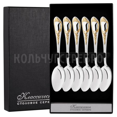 Серебряный набор "Весна" с позолотой на 6 персон (6 десертных ложек)