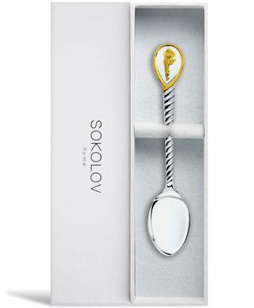 СЕРЕБРЯНАЯ ЧАЙНАЯ ЛОЖКА "ЗОДИАК-ДЕВА" С ПОЗОЛОТОЙ – SOKOLOV