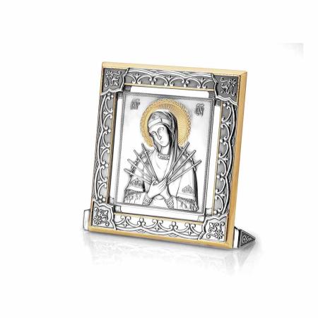 Икона "Семистрельная Божия Матерь" с чернением и позолотой арт. 930866С1 - 1 шт. (средний вес 33.38 гр.) Длина 75 мм., Ширина 67 мм.